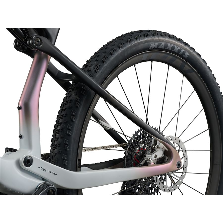 Další klíčovou inovací je zcela nová koncepce odpružení FlexPoint Pro – původní řešení s tlumičem podél sedlové trubky nahradila moderní koncepce semi-integrovaného tlumiče umístěného pod horní rámovou trubkou. Tato konstrukce – díky použití jediného karbonového vahadla – snižuje hmotnost rámu, ale také zlepšuje funkci odpružení, kdy při maximálním výkonu nedochází k žádným ztrátám energie, ale zároveň není nijak omezena citlivost na malé nerovnosti. Důležitým benefitem je také to, že v rámu je prostor pro druhý košík na láhev. Spolu s přemístěním tlumiče došlo také ke zvýšení zdvihu zadní stavby za 100 na 120 mm, což v kombinaci se 120 mm vidlicí umožní sjíždět náročné sjezdy rychleji a s větší jistotou. A je tu ještě jedna důležitá inovace – dvoupolohový systém flip chip pro snadnou úpravu geometrie podle typu terénu nebo vašich osobních preferencí.