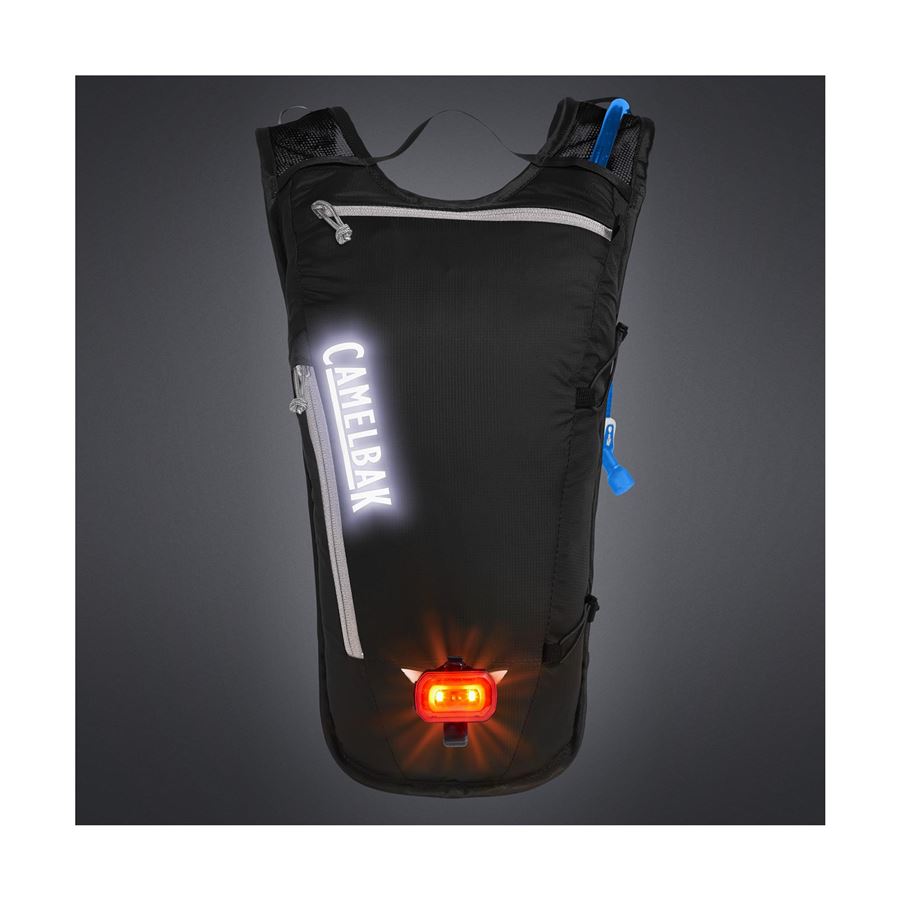 VLASTNOSTI lehké a prodyšné materiály, odvětrané popruhy, bezpečnostní kapsa, nastavitelný hrudní popruh, poutko na blikačku, úchyt na hadičku Tube Trap