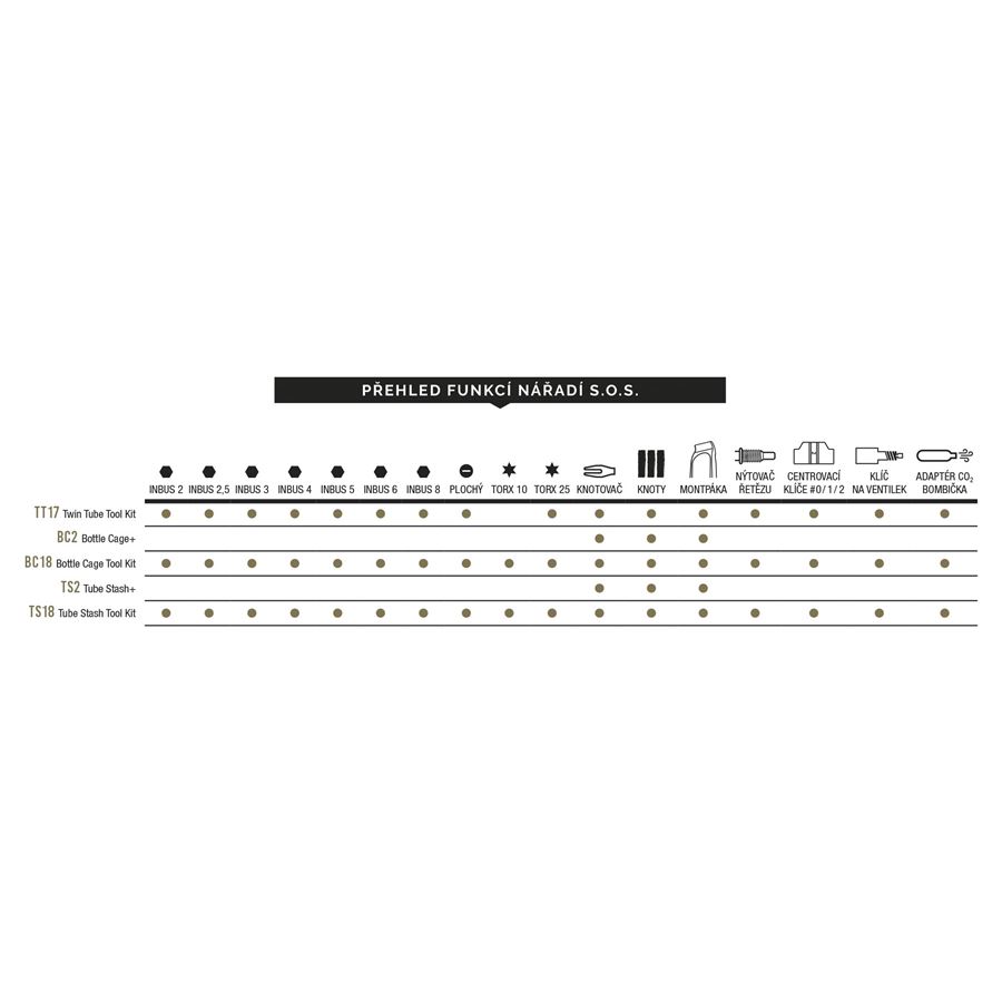 Komplexně řešené nářadí s prostorem na CO2 bombičku, které se montuje místo košíku nebo na jiná k tomu určená místa na rámu.