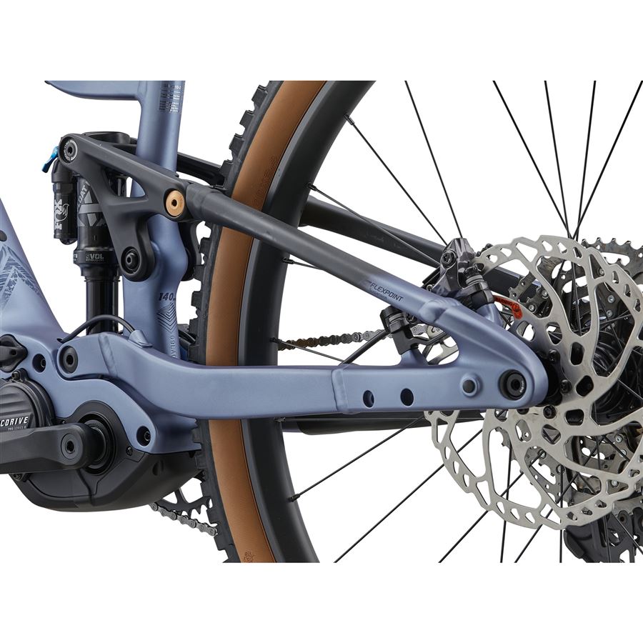 Odpružení FlexPoint představuje osvědčené a cyklistice velmi rozšířené jednočepové zavěšení zadní stavby s pomocným přepákováním. Tento v principu jednoduchý a na údržbu nepříliš náročný systém citlivě reaguje prostřednictvím vzduchového tlumiče na větší i menší nerovnosti. Zatímco předchozí generace Embolden E+ poskytovala zdvih 125 mm v kombinaci se 140 mm vidlicí, na nové generaci máte k dispozici zdvihy 140/150 mm, což schopnosti kola v terénu posouvá výrazně dál. Další zlepšení jízdních vlastností přináší upravená geometrie. Strmější sedlová trubka (úhel 76,5°) staví jezdce do lepší pozice pro výjezdy, aby jejich zdolávání bylo co nejefektivnější. Naopak v rychlých, prudkých či hodně technických sjezdech oceníte více položenou vidlici (úhel 64,5°) a větší pokles středového složení (BB drop), což společně snižuje těžiště kola, aby bylo stabilnější a lépe ovladatelné.