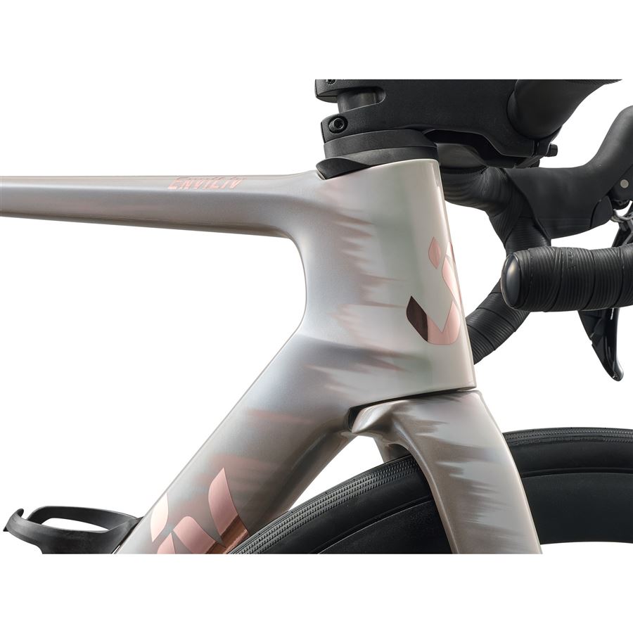 Aerodynamiku ovlivňuje mnoho faktorů, z nichž dva se často vzájemně vylučují: tuhost a hmotnost. Model EnviLiv ale našel ideální rovnováhu díky karbonovému rámu a vidlici z materiálu Advanced Composite, což se příznivě projevilo na hmotnosti – oproti předchozí generaci modelu EnviLiv Advanced se nám podařilo dosáhnout úspory 292 gramů.