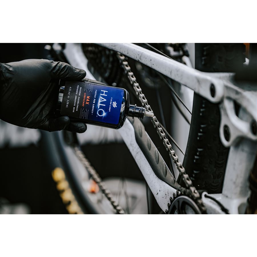 HALO Wax-Film je prémiové mazivo Finish Line na bázi vosku s bezkonkurenčním výkonem v podobě skvělé čistoty řetězu a velkého kilometrového nájezdu mezi jednotlivými aplikacemi maziva. Mazivo je tvořeno malými částicemi wolframu, vysoce rafinovaným parafínem a keramickou nepřilnavou technologií. Díky tomu je řetěz velmi tichý, dokáže zacelit malá poškození převodů a má malý odpor tření. Vstupte do nové dimenze údržby řetězu!
