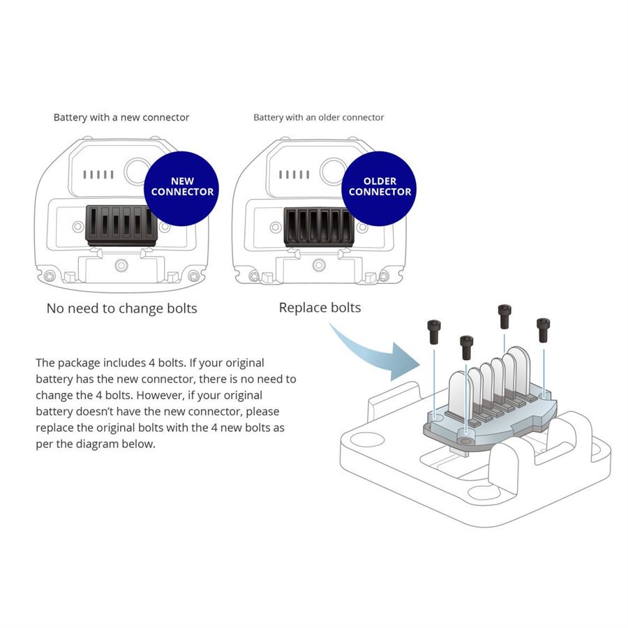 poznámka: součástí balení jsou čtyři šrouby, které budete potřebovat v případě, že vaše původní baterie nemá nový konektor (viz obrázek v galerii); pokud vaše původní baterie má nový konektor, není třeba šrouby měnit
