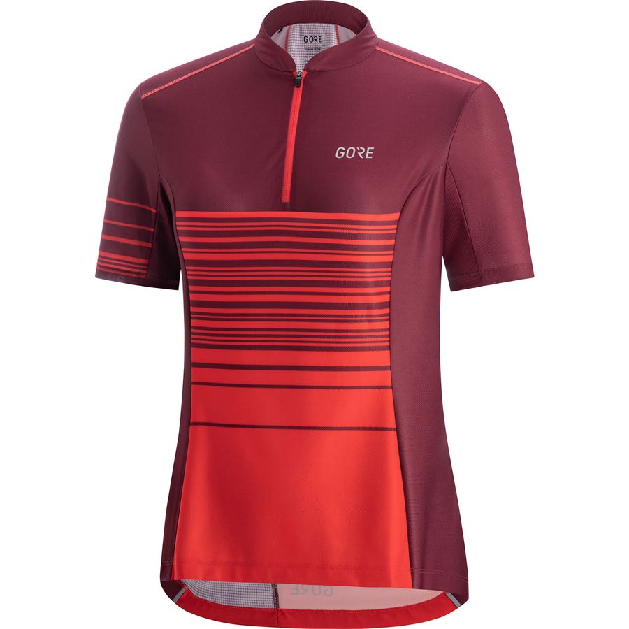 GORE C3 Women Striped Zip Jersey-hibiscus pink/chestnut red-34