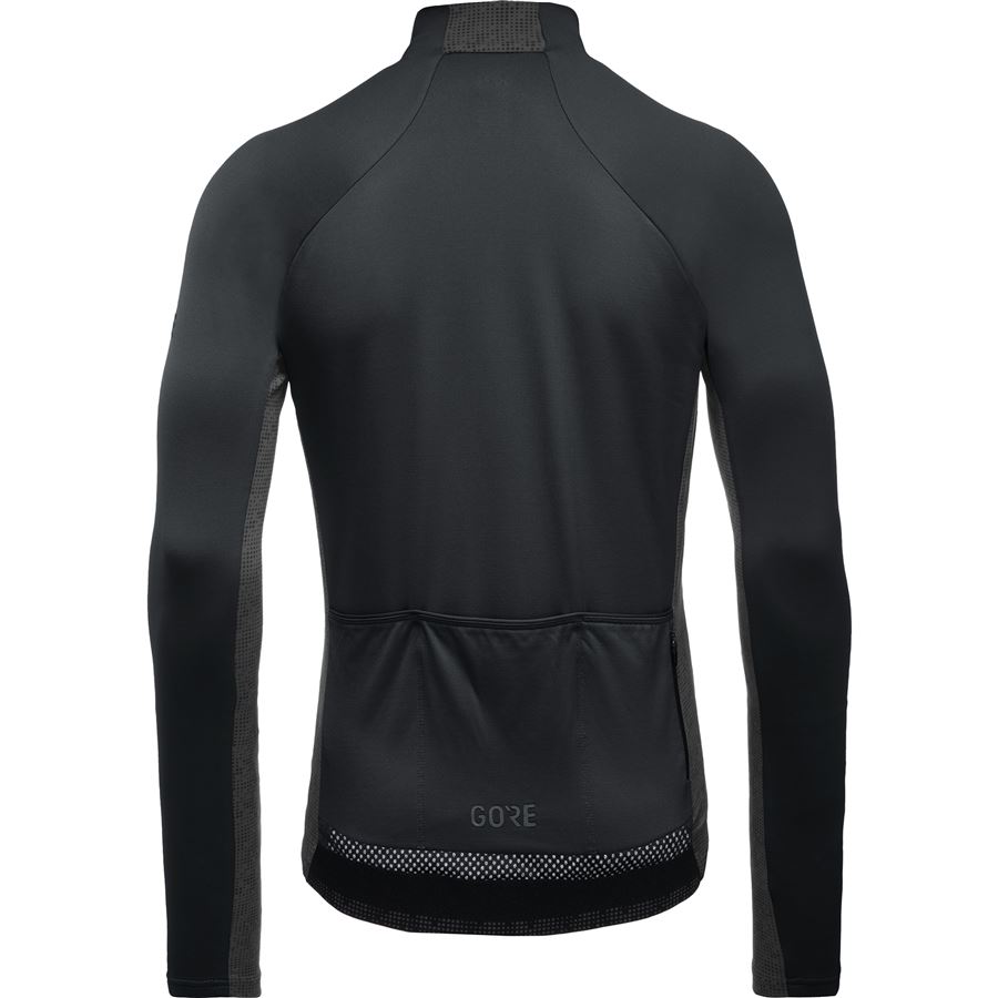 Zónové rozdělení tkanin - přední část termoizolační látka, méně hřejivé boční panely a ve spodní části rukávů, vsadka ze síťoviny v zadní části zajiušťuje odvětrávání